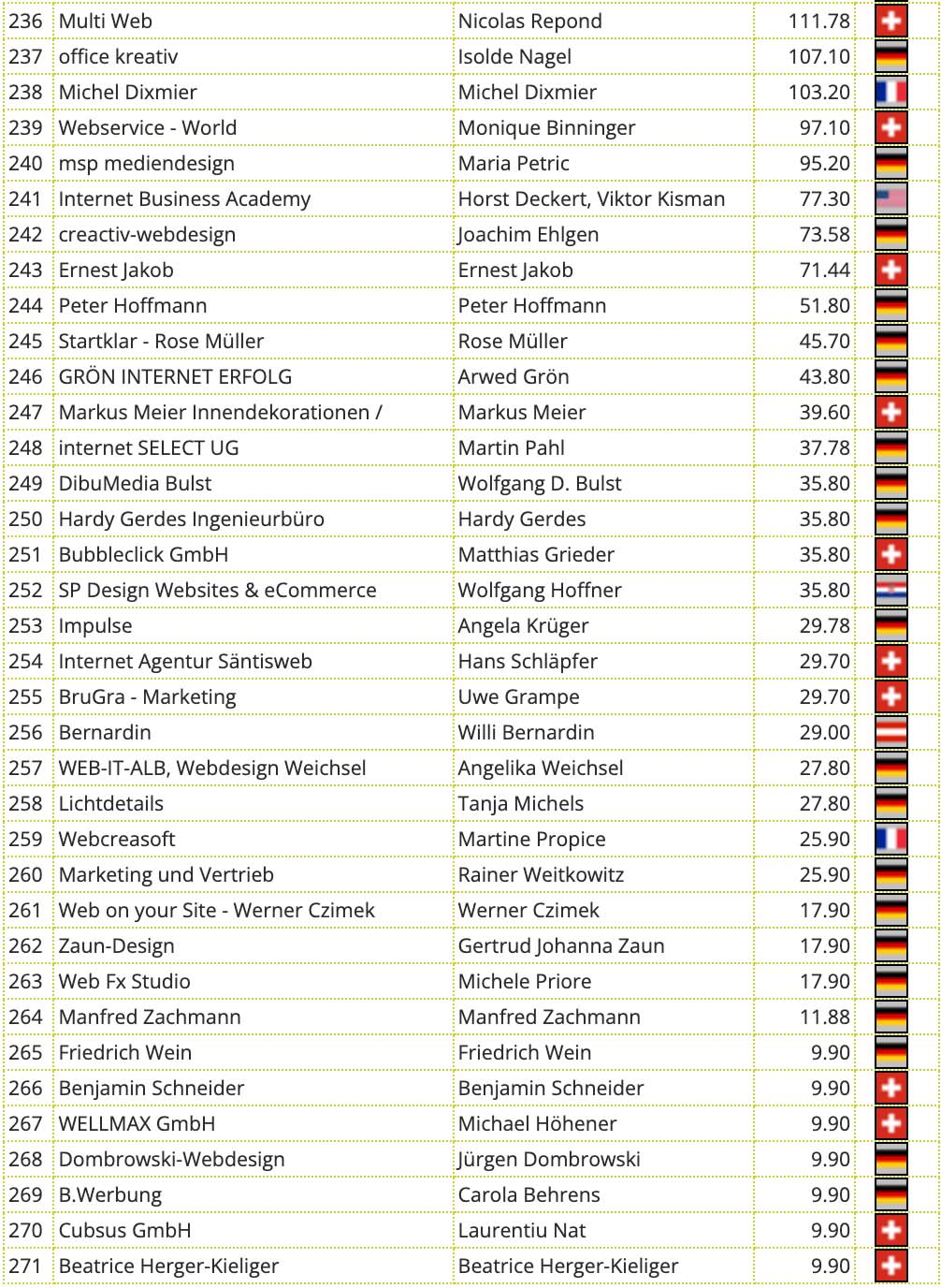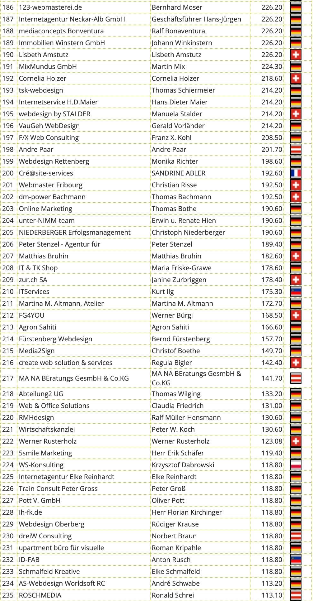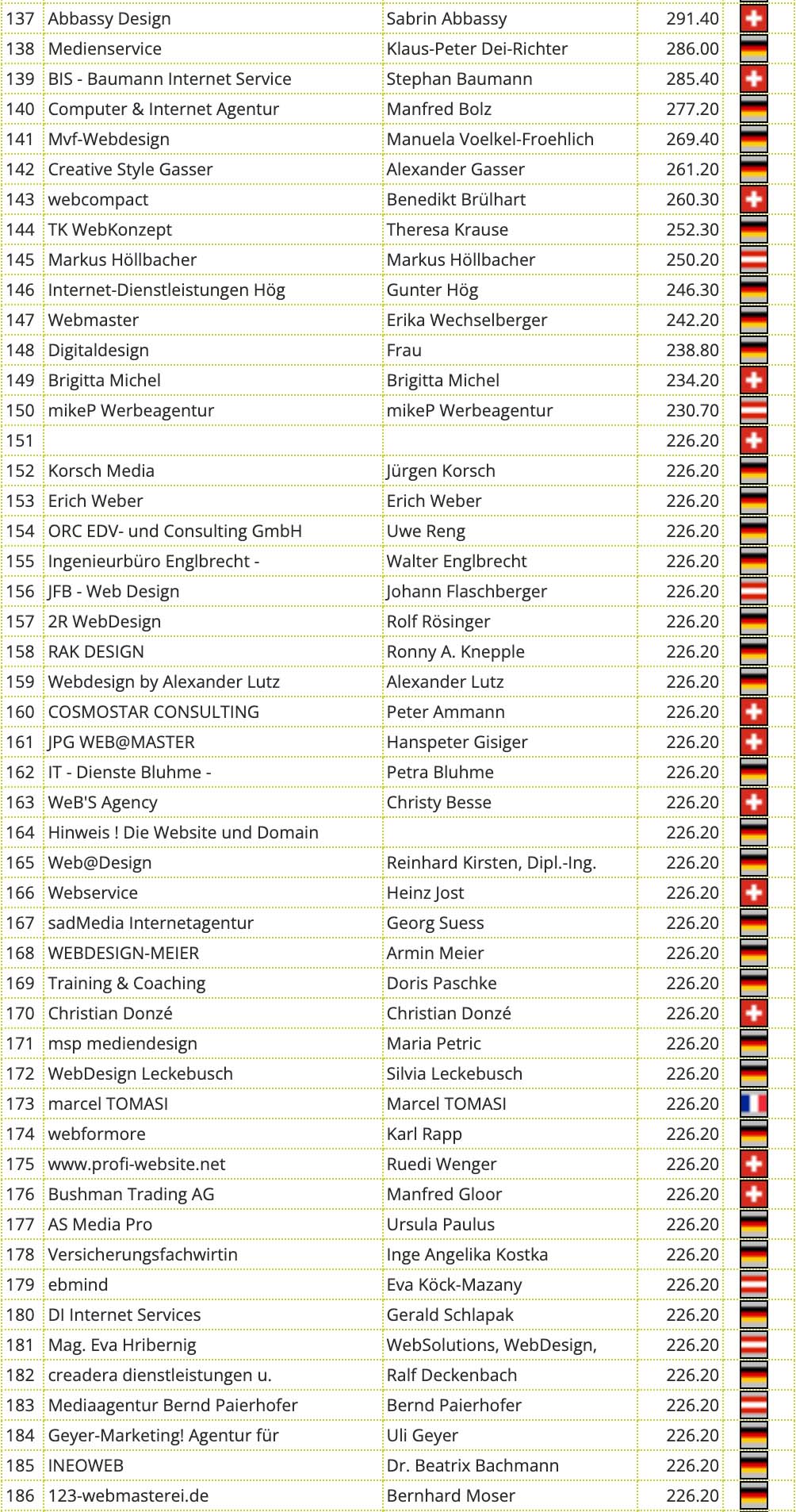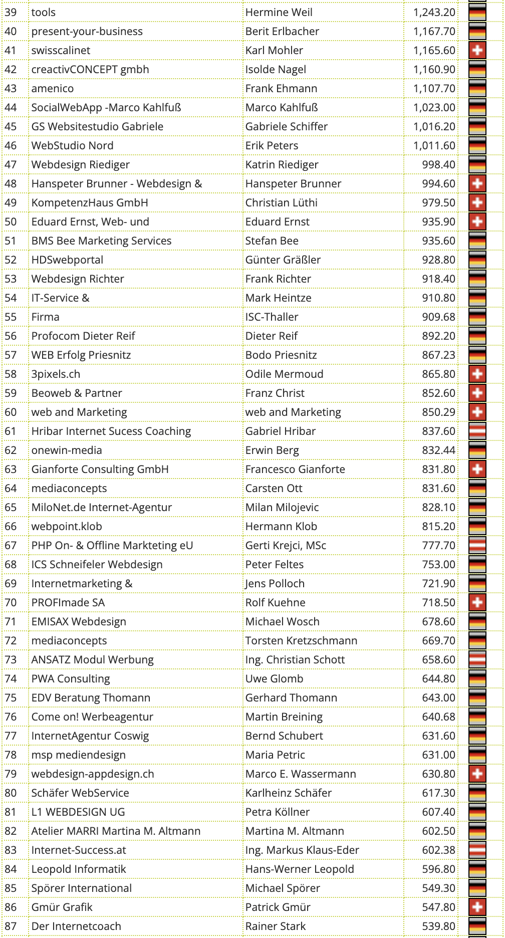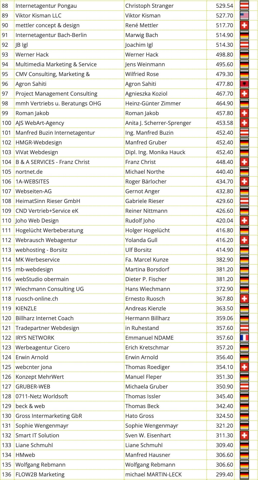 Diese beiden Listen weichen etwas voneinander ab. Einige Partner haben zwei Partnerkonten bei uns. Diese werden für den Wettbewerb addiert.
